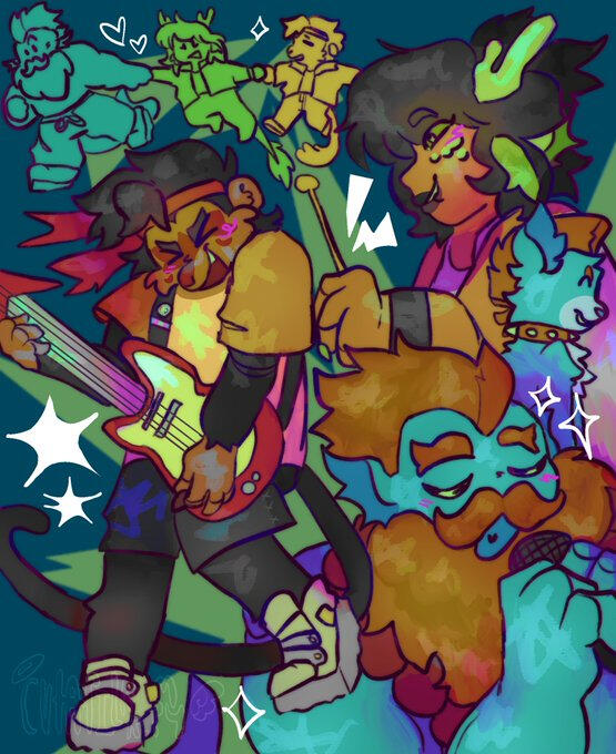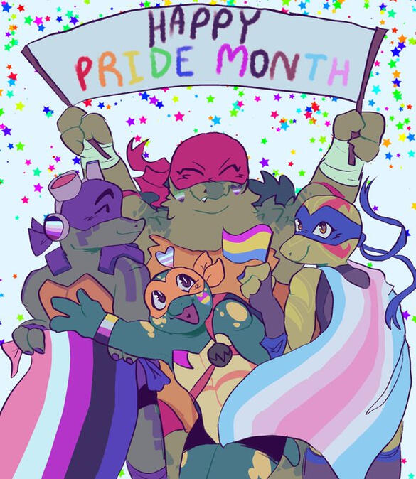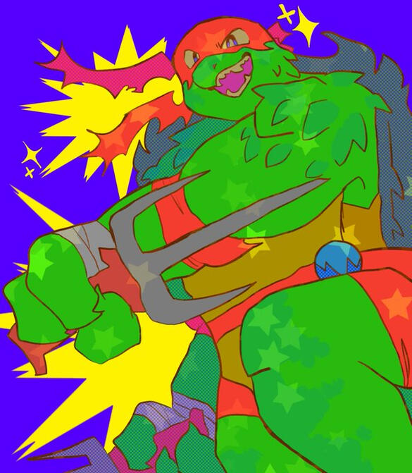 Just a little guy doing art . Here's some of my social medias above. I'm currently hyperfixating on tmnt so I make a lot of fanart for it or some sonic and other cartoons once in a while. I don't do much with my ocs. If you're interested I'm mostly active on twitter but you can follow me on my other accounts if you want.